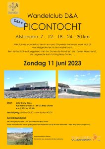 Programma: 09u30 deelname aan Picontocht over afstanden van 7 – 12 – 18 – 24 – 30 km langsheen de Noord-Franse kustlijn